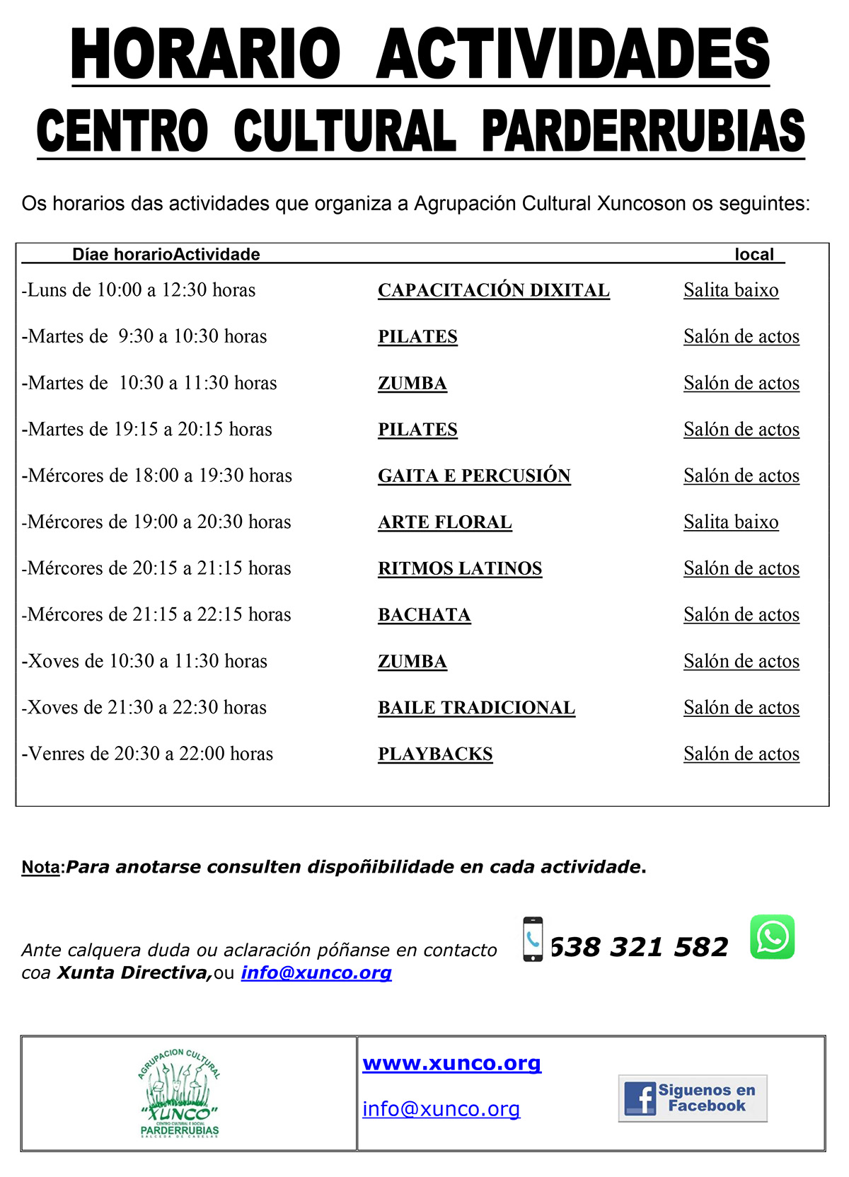 ACTIVIDADES EN CURSO 2025-26 – HORARIOS